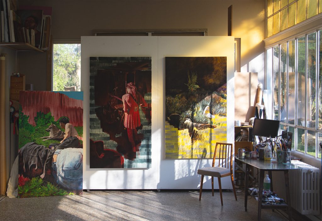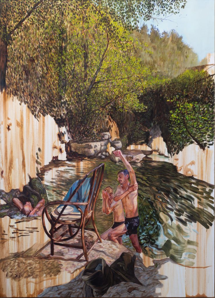 « (…) Il n’y a pas de sujets « fake » chez Abel, pas de sujets choisis parce que c’est à la mode ou que ça marche bien. Sa peinture répond à une nécessité personnelle et incarnée. Abel vit les sujets et les espaces des œuvres qu’il peint. Il aime et côtoie ses modèles qui sont toujours des proches directs, familles ou amis. Monde rural, scènes quotidiennes vécues en communauté, voyages, rencontres, soirées, concerts : tous les thèmes traités par Abel ont été d’abord éprouvés, vécus dans le réel avant de passer au tamis de l’atelier. (…) » Amélie Adamo