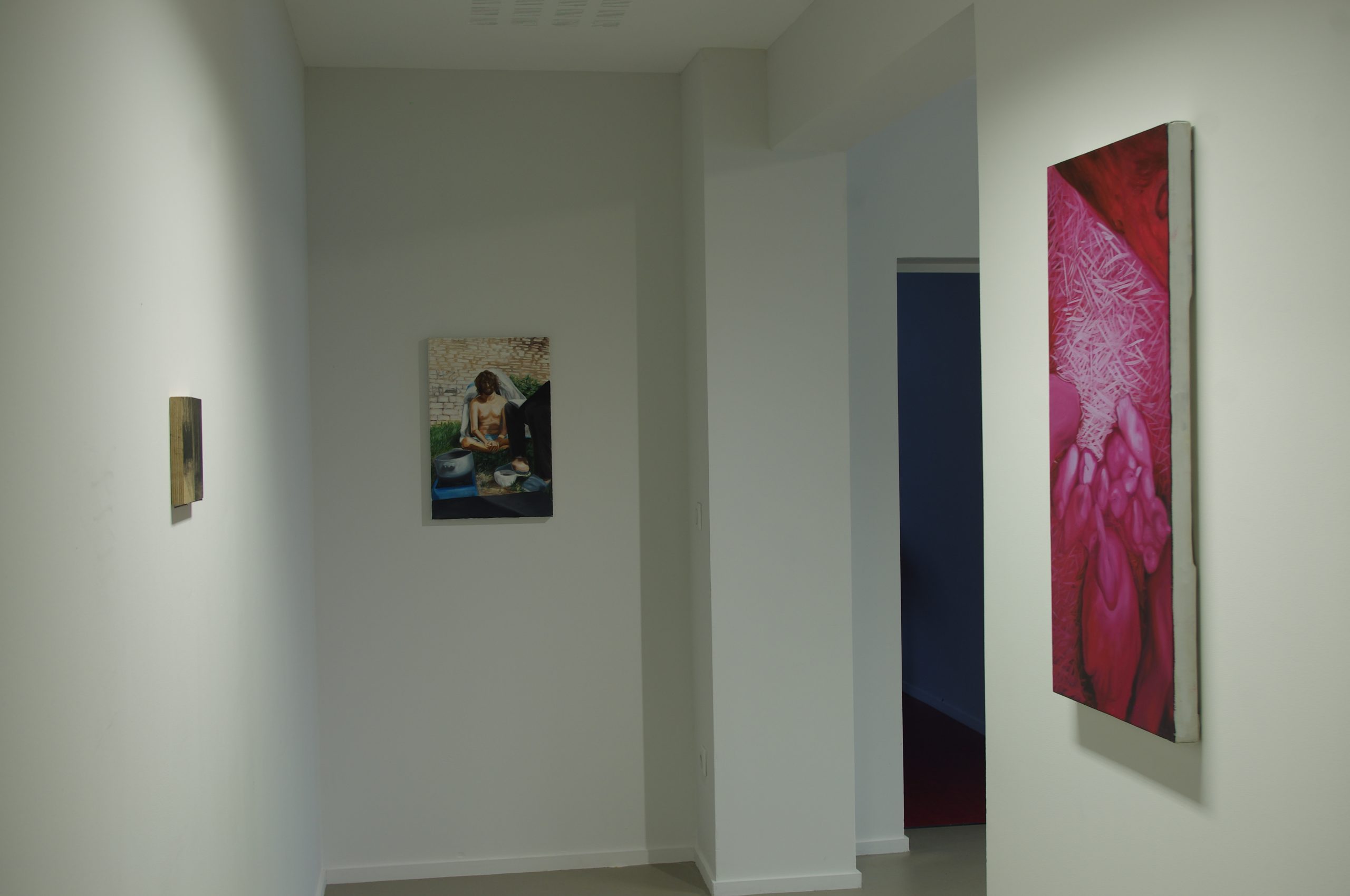 Elle invite à une promenade entre les tableaux. Des dialogues graphiques sont créés au gré de l’accrochage. Du rituel à l’anecdote, de l’habitude au bouleversement, les scènes peintes nous ouvrent les portes d’univers intimes.